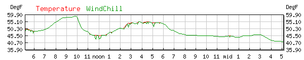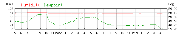 Dewpoint 45.4°F High 54.0F at 9:12AM Low 41.0F at 11:07AM |