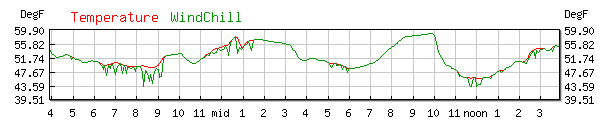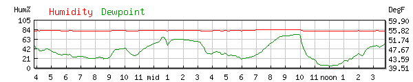 Dewpoint 45.4°F High 54.0F at 9:12AM Low 41.0F at 11:07AM |