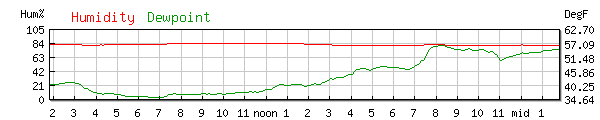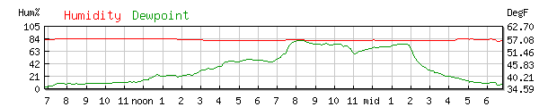 Dewpoint 47.1°F High 48.0F at 5:06PM Low 36.0F at 5:16AM |