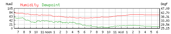 Dewpoint 27.9°F High 55.0F at 1:05AM Low 27.0F at 6:16PM |