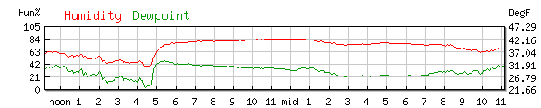 Dewpoint 32.0°F High 34.0F at 5:13PM Low 22.0F at 4:19PM |
