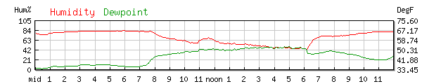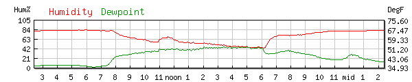 Humidity 83% High 83% at 2:50AM Low 75% at 12:19AM |