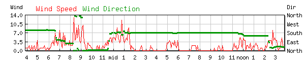 Wind 0.0MPH Wind Dir: SSE (153°) High 21.0mph at 12:42AM |