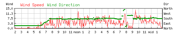 Wind 3.0MPH Wind Dir: SSE (166°) High 22.0mph at 4:08PM |