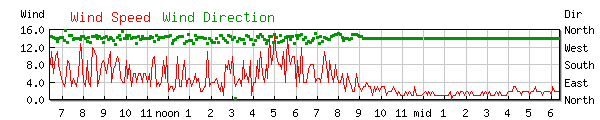 Wind 7.0MPH Wind Dir: NW (303°) High 27.0mph at 9:24AM |
