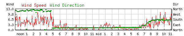 Wind 3.0MPH Wind Dir: NE (39°) High 16.0mph at 3:37PM |
