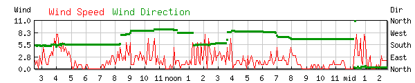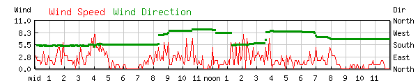 Wind 5.0MPH Wind Dir: SSW (185°) High 14.0mph at 3:56AM |